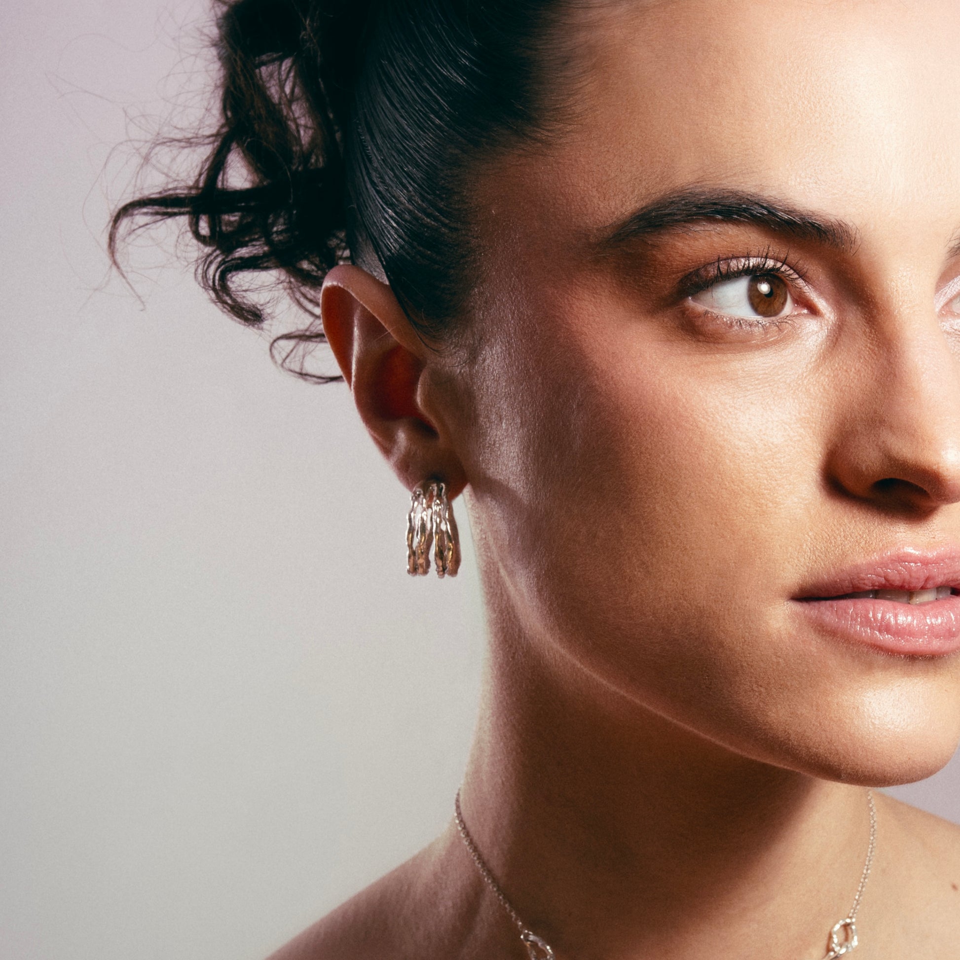 Compuestas por cuatro líneas principales que se entrelazan formando una multiargolla, logran un equilibrio perfecto entre presencia y ligereza, dando un aspecto sólido sin perder delicadeza.