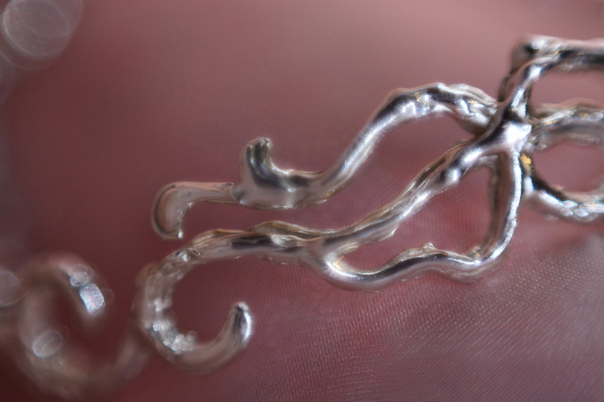 Este brazalete de plata presenta un ornamento central con ondas y formas onduladas que evocan la serenidad y el movimiento del mar. Su diseño combina una parte rígida con eslabones y un broche ajustable, lo que permite adaptarlo perfectamente a tu muñeca.