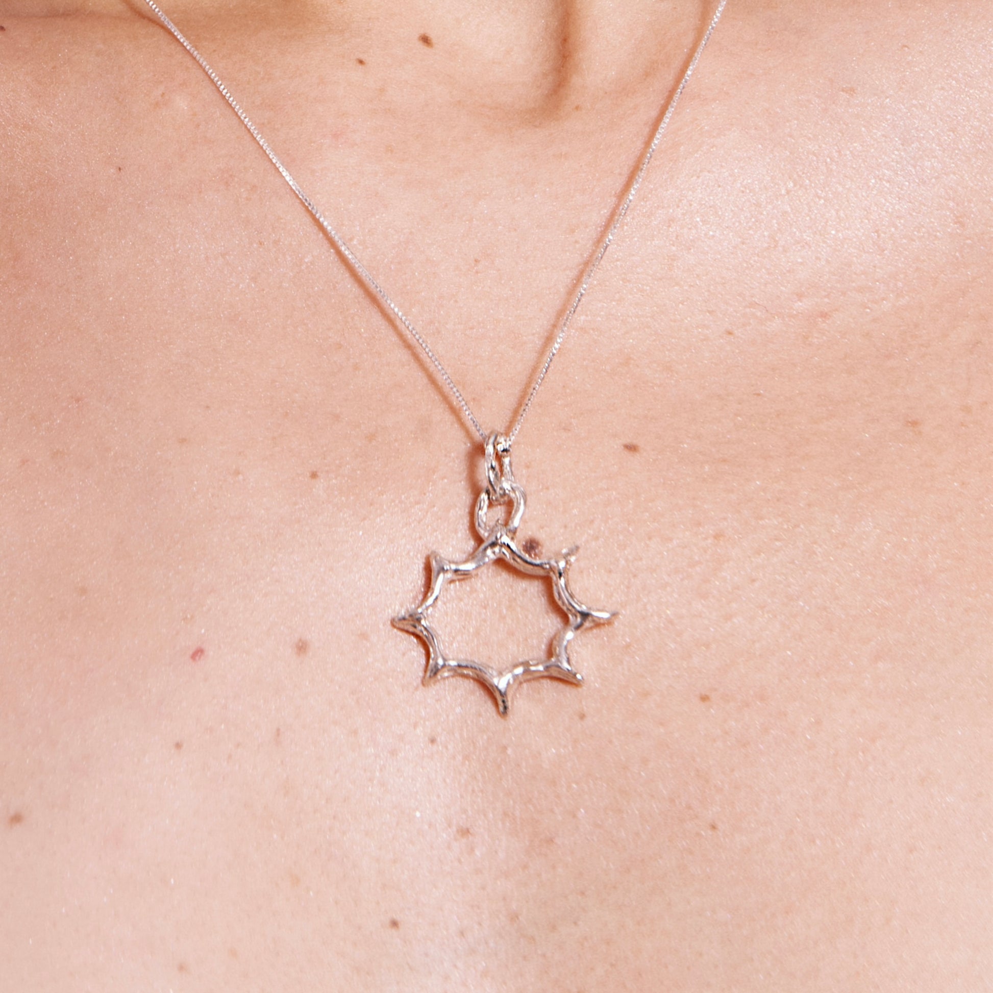 Este colgante en forma de estrella de 8 puntas simboliza el equilibrio, la armonía, la renovación y la unión entre lo divino y lo terrenal.