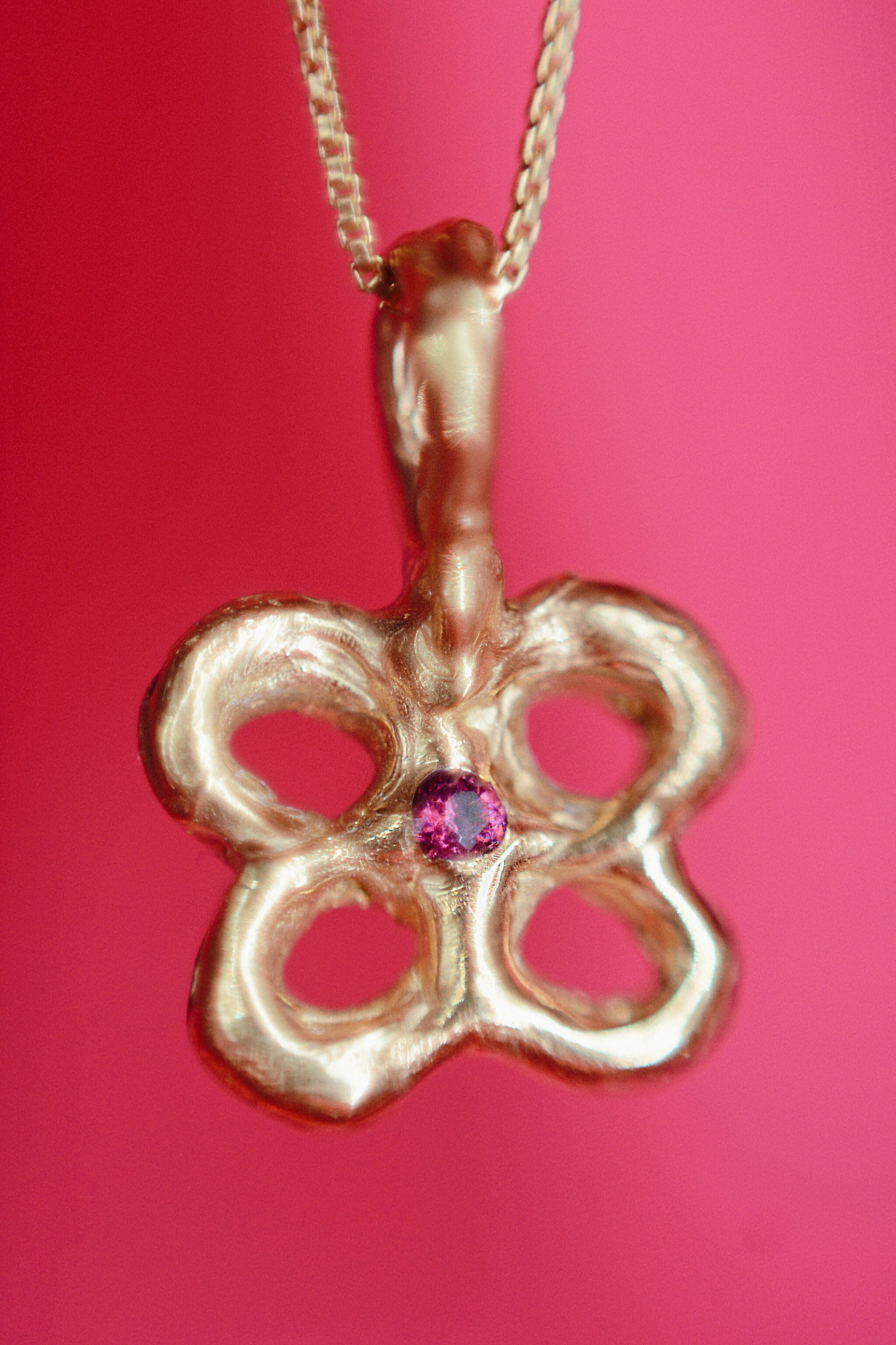 🔹 Dije: 1 cm aprox. (Piedra granate en el centro)